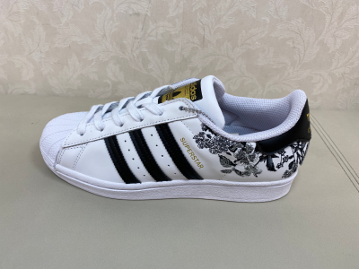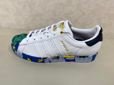 SUPERSTARのかかと部分に花模様の刺繍が入ったデザインが登場しました。定番のものとまた違った雰囲気があってかわいいです☆