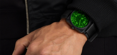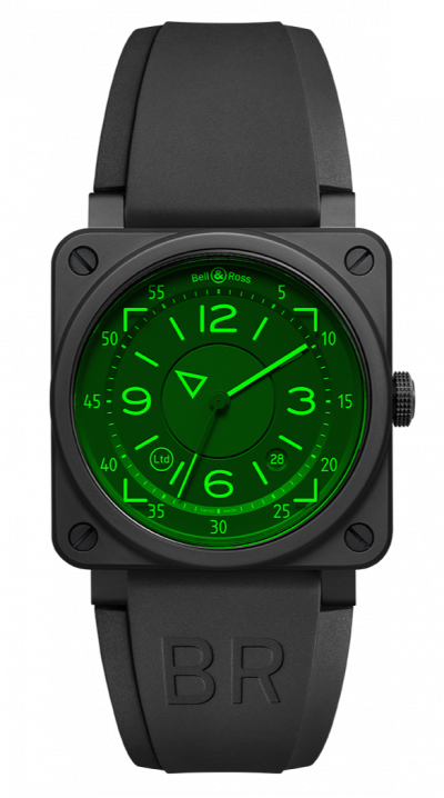 42mmマット仕上げのブラックセラミックケースは、他のBR03-92コレクションと共通仕様ですが、HUDにインスパイアされた本モデルは、999本限定生産となっていて、そのうち国内入荷は僅か5%弱で約50本程となっており大変貴重です。