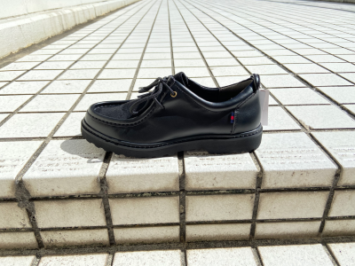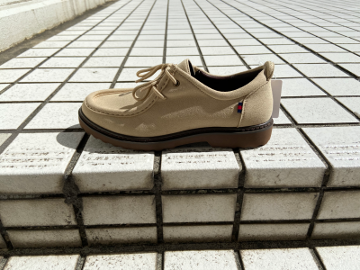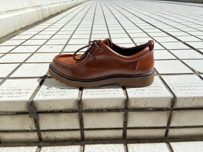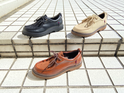 ラウンドトゥにパイプモカシン、ラグソールで